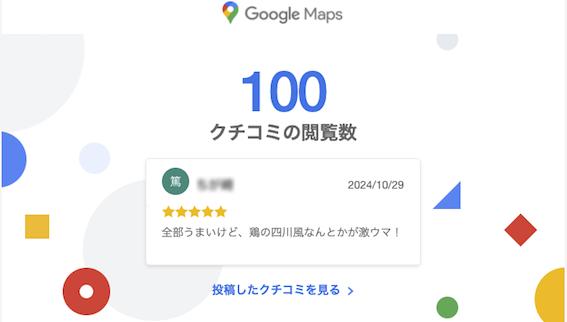 Googleクチコミを投稿すると、その後どのくらい閲覧されたか投稿者自身もわかるようになっています。